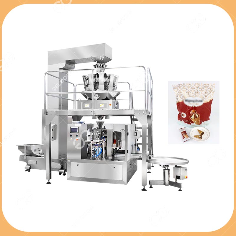- Medição inteligente de balança multi-cabeças: equipada com um sistema de balança multi-cabeças de alta sensibilidade, pesagem e distribuição precisas para produtos de cones de gelado para garantir a consistência da embalagem.